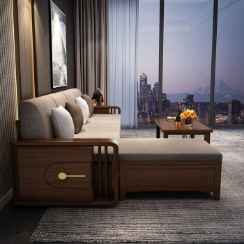 聯匠の胡桃の木のソファー現代中国式冬夏両用の実用的な木のソファーのリビングルームには、貴妃の回転角ソファ1+2+3の荷物を収納するソファがあります。
