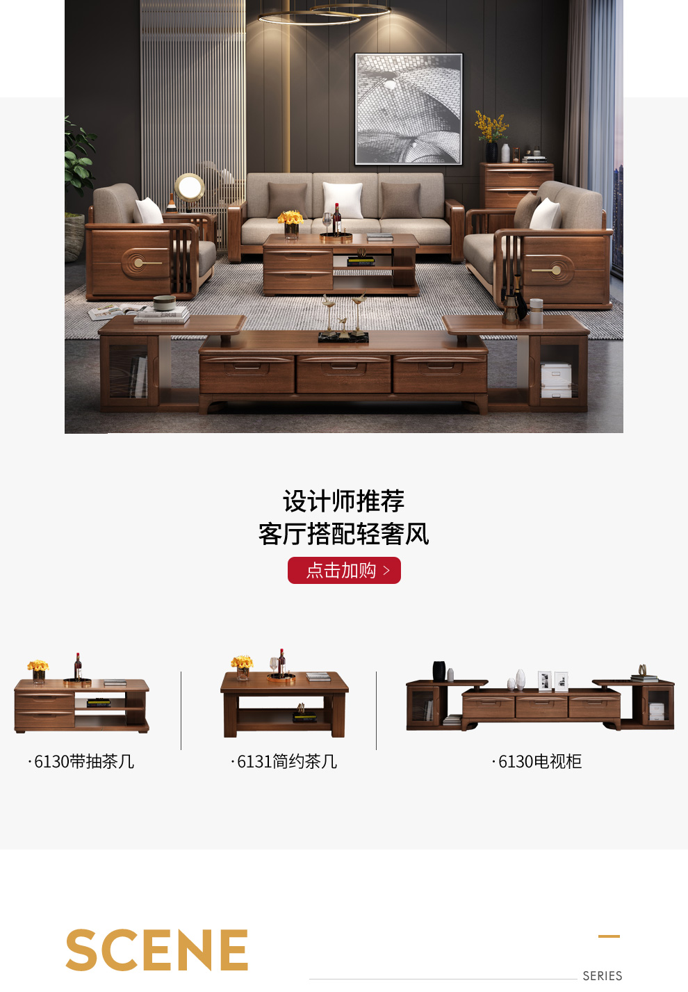 聯匠のソファー胡桃木の実木ソファ布芸ソファー現代中国式ソファーのリビングルームには、丸太家具を三人で配置した色備考があります。