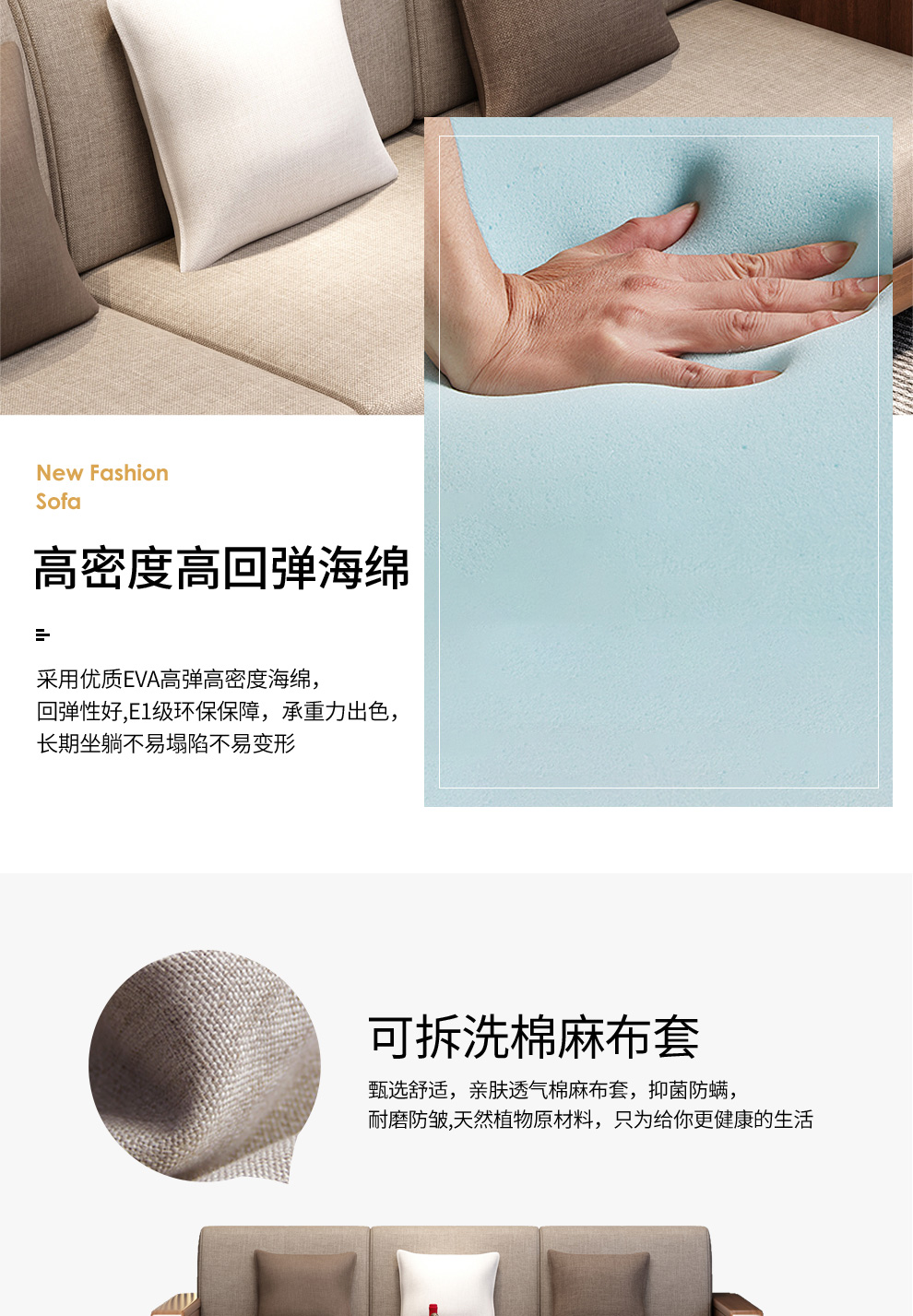 聯匠のソファー胡桃木の実木ソファ布芸ソファー現代中国式ソファリビングセットの木製家具4人位+貴妃位の色備考