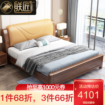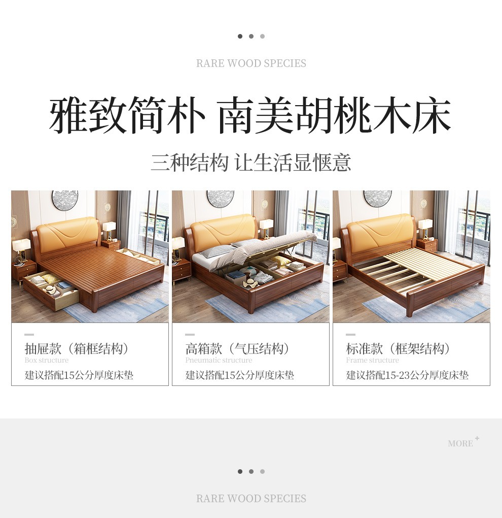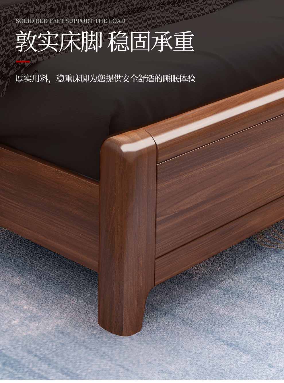 連結匠の実木ベッド金糸胡桃木床1.8メートルダブルベッド1.5メートルの軟包シングルベッド現代中国式高箱収納物引出しベッド家具セット+1箱+8011 9区分のラテックスパッド(ハード両面)引出しタイプ