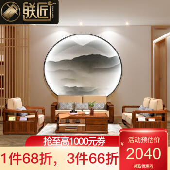 聯匠ソファ胡桃木の実木ソファ現代中国式1+2+3木の布芸ソファーリビングには、貴妃の角を回転する実木ソファ家具セットがセットになっています。