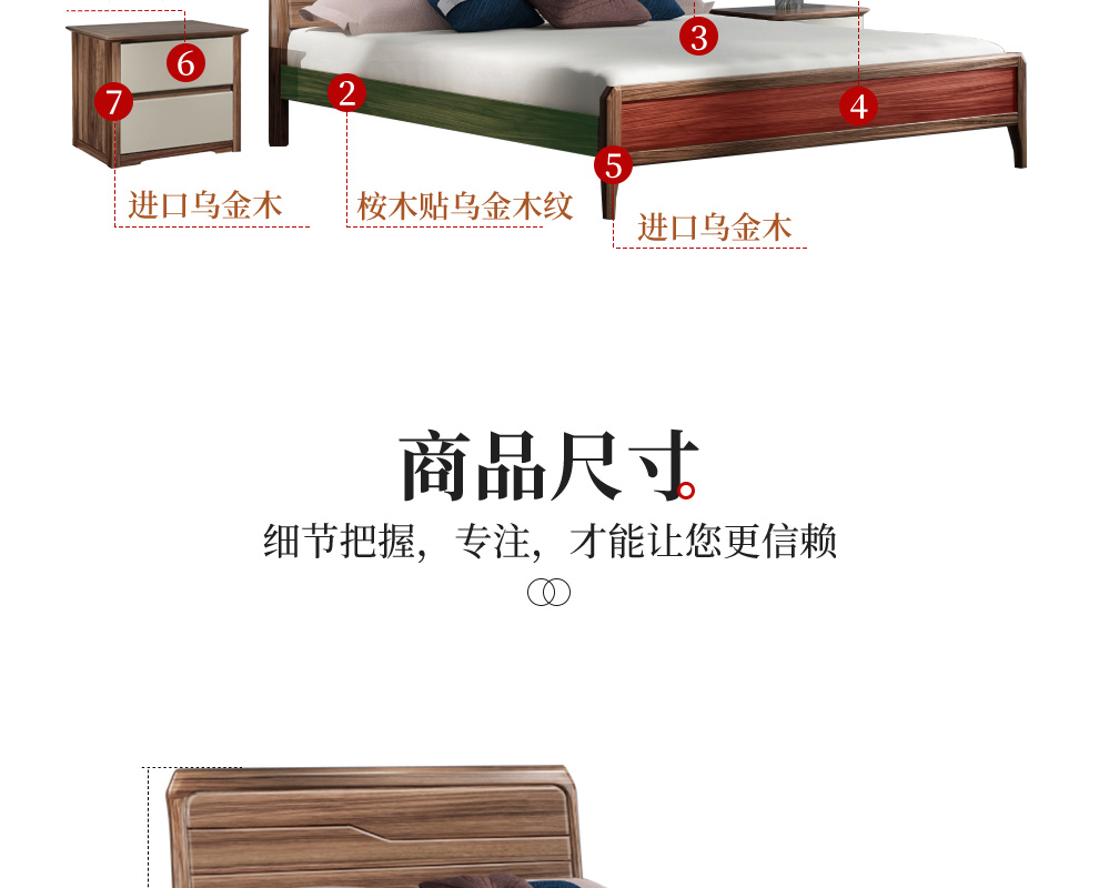 聯匠ベッドの烏金木床の中国式の木造ベッドのダブルベッドの1.8メートルの主な寝台の結婚式ベッドの近代的な寝室の家具のシングルベッドの+6338ベッドのヘッドテーブル*1 1800*2000