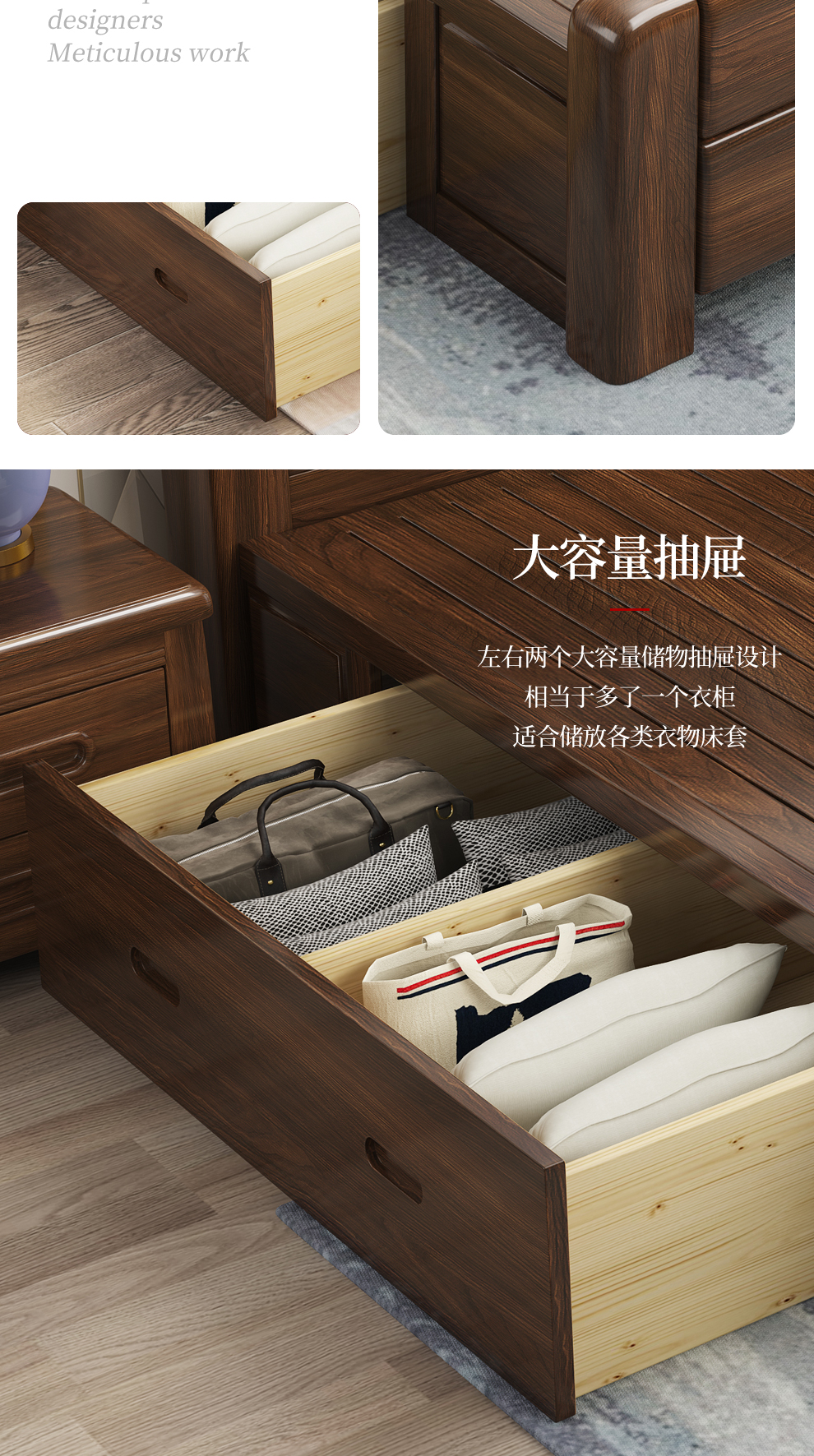 聯匠胡桃木の実木ベッド1.8メートルの高さの箱の荷物を保管するダブルベッドの1.5メートルの背もたれの柔らかいカバンのシングルベッドルームの家具の引き出しの結婚ベッドのベッド+2つの箱+8011 9つの分区のラテックスのマット(柔らかい硬い両面)の引き出しの項