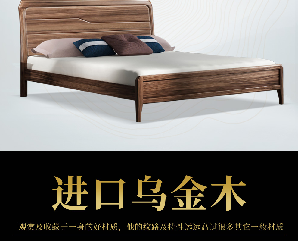 聯匠ベッドの烏金木床の中国式の木造ベッドのダブルベッドの1.8メートルの主なベッドの結婚式ベッドの近代的な寝室の家具のシングルベッド+1つの箱+8011ラテックスのマットレス(柔らかい両面)1800*2000