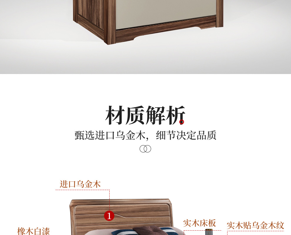 聯匠ベッドの烏金木床の中国式の木造ベッドのダブルベッドの1.8メートルの主なベッドの結婚式ベッドの近代的な寝室の家具のシングルベッドの+2つの箱+8011ラテックスのマットレス(硬い両面)1800*2000
