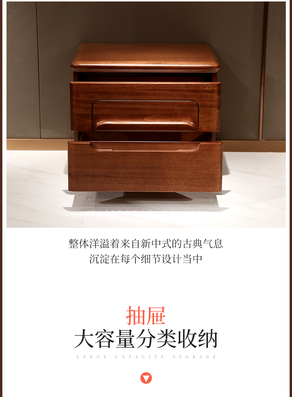 聯匠の丸太の寝台の頭棚胡桃の木の寝台の頭の棚現代中国式のベッドの隅の棚の収納棚の木の家具の中国式のベッドの頭の棚のダブル引き出しのベッドの頭の棚
